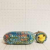 懐かしく暖かみのある、レトロ調ライトブルーのあみぐるみがま口です。