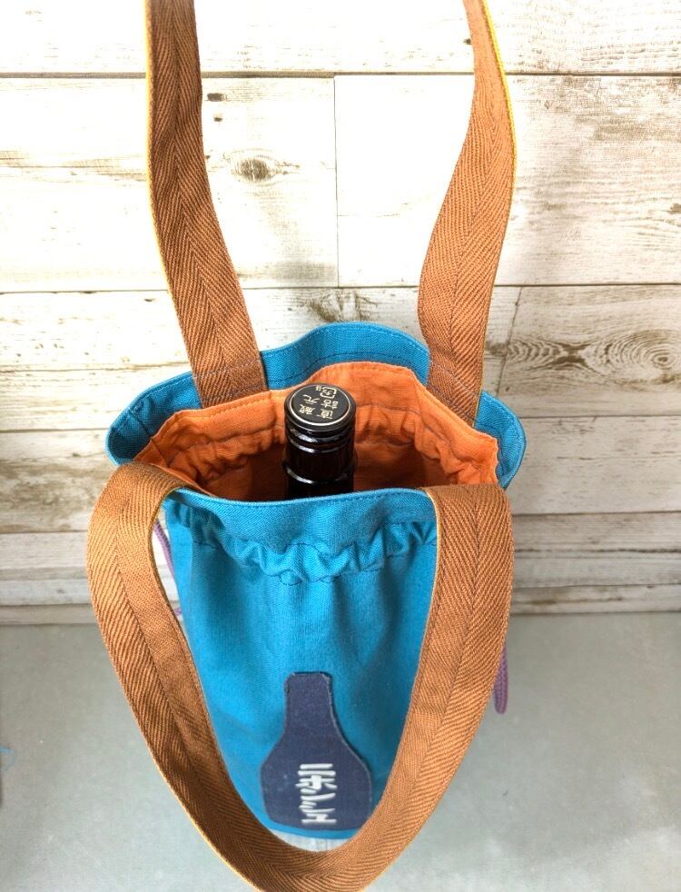 丈夫な帆布で作った、一升ビン専用のエコバッグ。